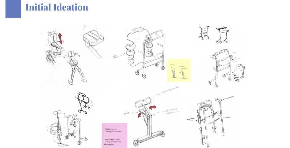Sketch Ideation: Initial sketches evolved into detailed designs incorporating ergonomic research and material considerations. The focus was on creating a device that facilitates easy movement while ensuring safety.